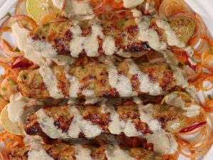 -On kababs,drizzle prepared sauce & serve!