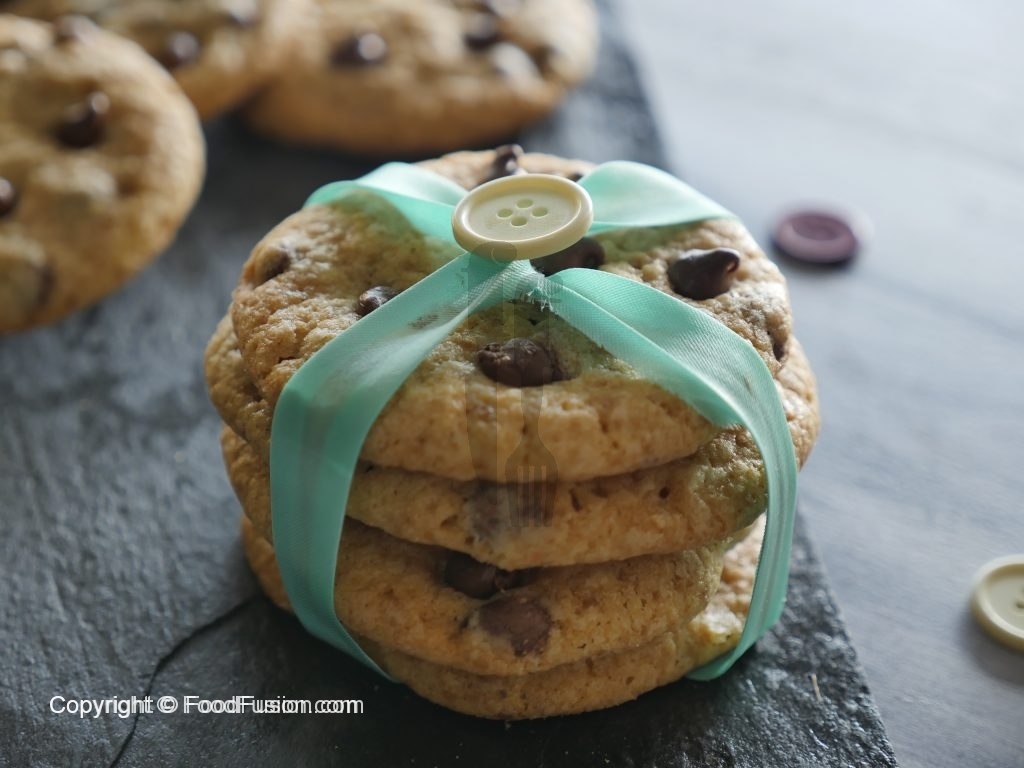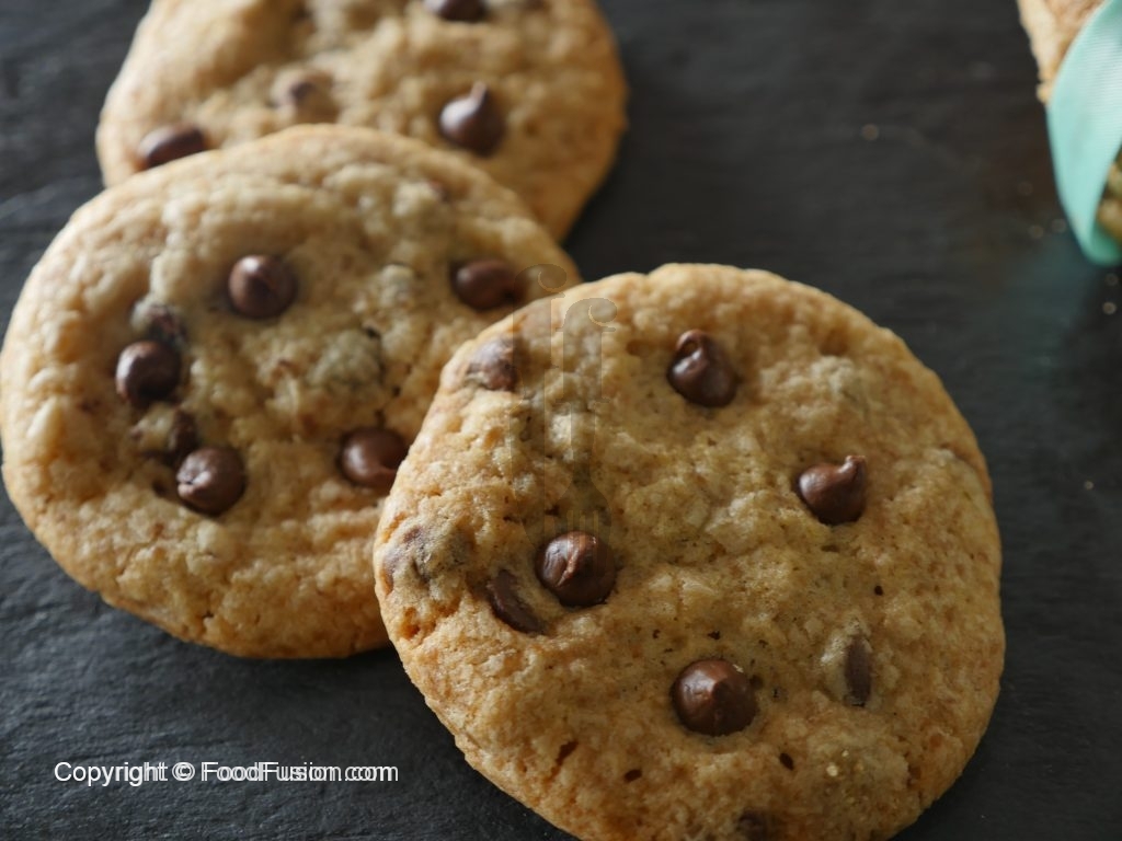 Baking tray ko oil sa grease karein,mixture ko la ker ball bana lein aur baking tary per rakh ker halka sa press ker ka chocolate chips laga lein.