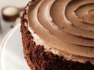 -Ek aur cake layer rakh dein aur tayyar frosting laga lein aur cake ki sides ko cover ker lein phir cake crumbs ko cake ki sides per laga lein & 4 hours kliya refrigerate ker lein.