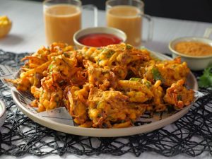 -In a wok,heat cooking oil & fry pakoray on medium flame until golden & crispy.