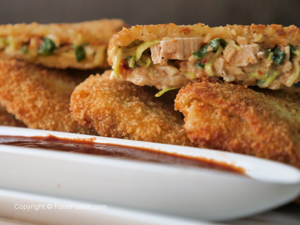 In frying pan,add oil and fry chicken fillets from both sides until done (4-5 minutes each side).