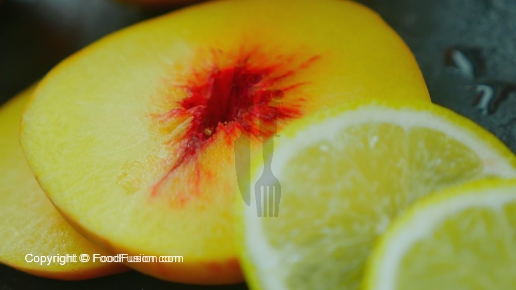 In serving glass, add peach and lemon slices, pour peach mixture, cold water and lemon juice.
