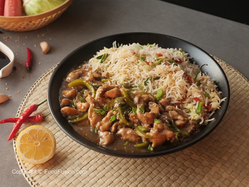 Another indo-chinese recipe, Chicken Mangolian with Fried Rice. A complete step by step recipe with simple ingridients. #HappyCookingToYou #FoodFusion