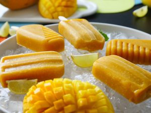 In popsicle moulds,pour blended mixture and freeze overnight.