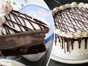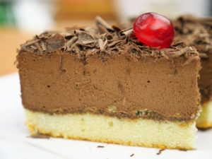 -Place first layer of cake on cake stand & apply prepared chocolate frosting.
