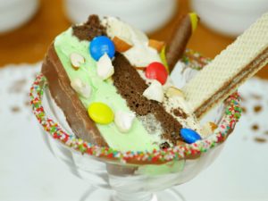 -Pour prepared chocolate ganache & dark chocolate on the slice.