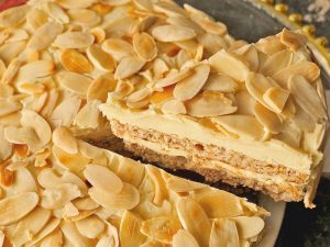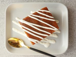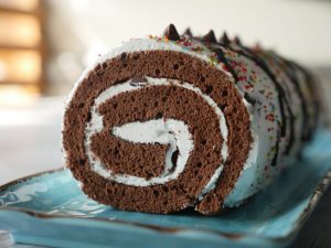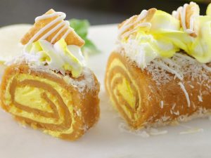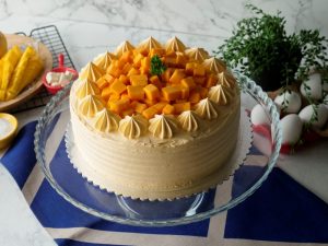 -Knife ki madad sa cake ko do horizontal layers mein cut ker lein.