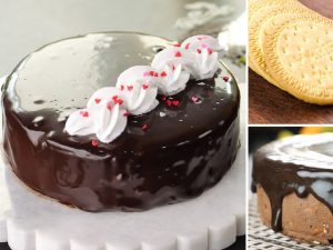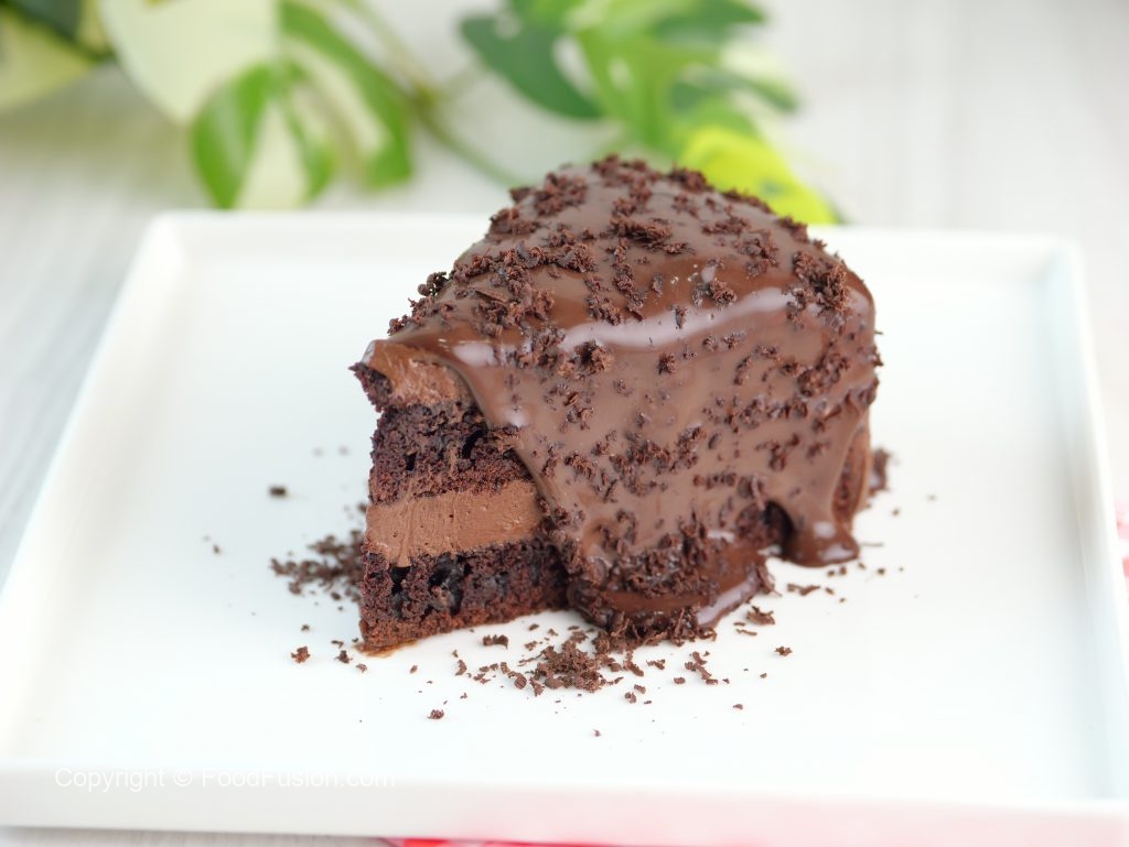 -Ek aur cake layer rakh dein aur tayyar chocolate frosting laga lein aur cake ki sides ko frosting sa cover ker lein aur 2 hours kliya refrigerate ker lein.