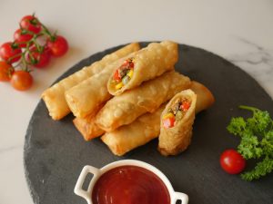 Option no 2: Air fryer machine mein mexican rolls rakh ker oil sa grease karein aur 180 C per 10 minutes kliya air fry ker lein.
