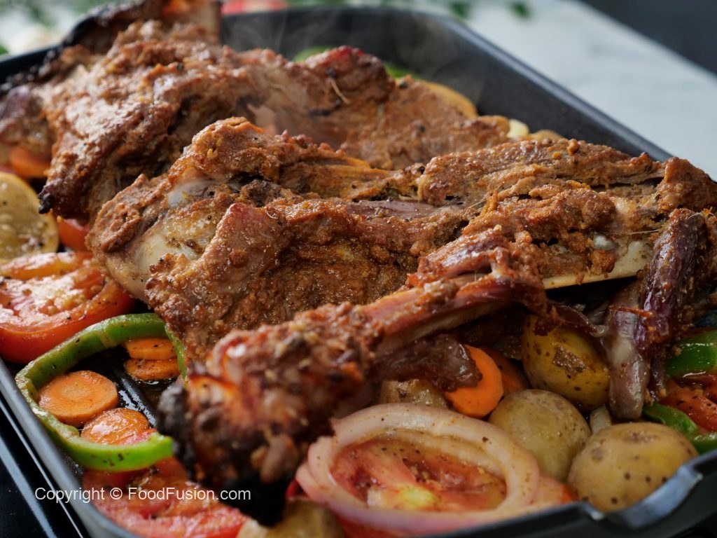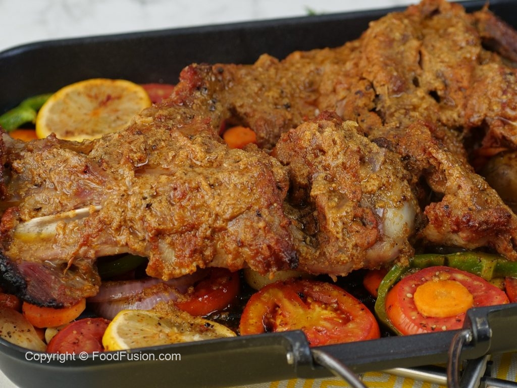 Place extra thick parchment paper & marinated leg,cover & steam cook on low flame until tender (1 hour).