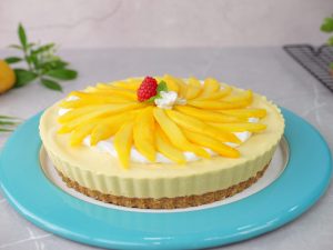-Add & spread prepared mango cream on biscuit crust & refrigerate until set (4 hours).