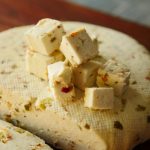 Now line the strainer tray with muslin cloth/cheese cloth and enclose flavored cheese with muslin cloth and put heavy weight on it.