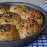 Apply garlic herded butter and bake in preheated oven at 180 C for 20-25 minutes.