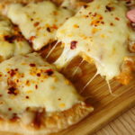 Add cheddar cheese,mozzarella cheese and red chili flakes,cover and cook on low flame until cheese melts.
