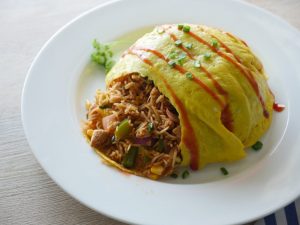 Add & spread butter,place cabbage leaves,fried rice,potato fries,stir-fried vegetable,shashlik sauce & serve!