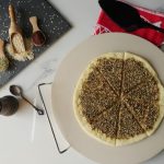 Add & spread prepared sesame seeds mixture (makes 4).